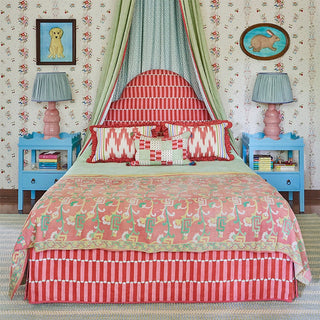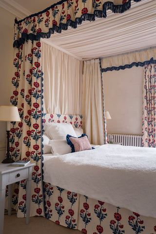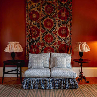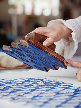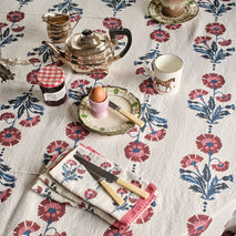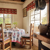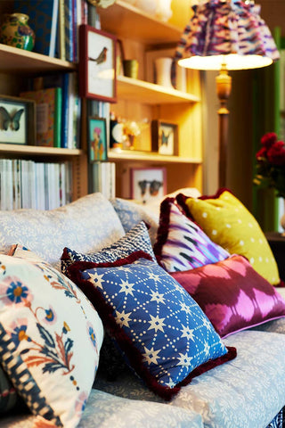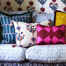 Pairing her iconic block prints with traditional silk ikats, Molly has created a rich tapestry of textures. From burgundy edged linen tablecloths to plump colour rich ikat cushions with opulent trims, every piece is crafted to bring richness and warmth into every corner of your home.