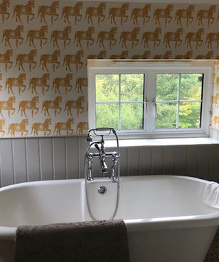 Marwari Horse has been particularly popular with bathrooms and boot rooms over the years. We have it in several colours as shown in Pink and Deep Blue here.